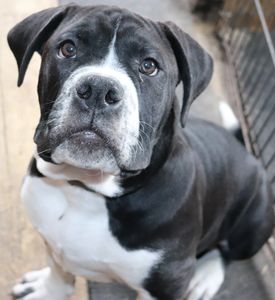 The Alapaha Blue Blood Bulldog is a breed of bulldog from the United States that is predominantly used as a guard dog. It is a very powerful, muscular breed with large head and brachycephalic muzzle; although they have less breathing problems than their ancestors the English bulldog. The hair coat is short, typically colored white with black, blue, buff or brown patches, and its tail is kept un-docked. The males of this breed are typically twice the weight of smaller females. Check out these great resources on the breed.